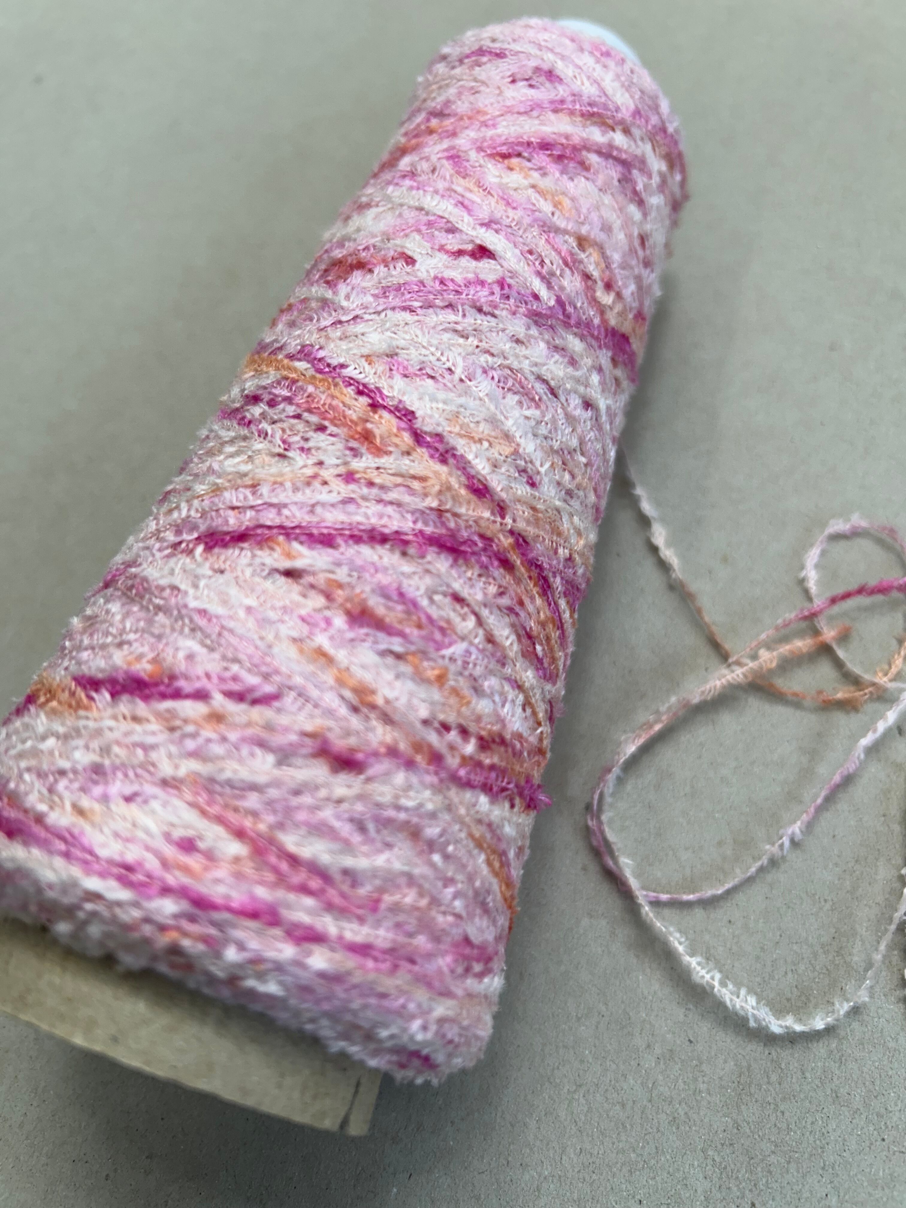 肌触りの柔らかい、シルク100%のモール糸を色鮮やかな多色染めで染めあげています。